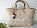 ウッドハンドルトートバッグ *風ゆらりアネモネ八重*ベージュ*