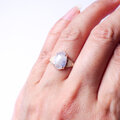 商品画像や説明の通りで、素敵なリングでした。氷ひすいの優しい色と、アームは実は仏さまがいるという、個性的なデザインに惹かれました。また、仕上げの艶消し加工が本当に綺麗です。指にスッと馴染み着け心地も良いです。たいへん気に入りました。大切にします。丁寧なご対応もありがとうございました。