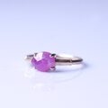 真ん中が濃い目ピンク、その周りにシアーな輝きのある層、その周りがまた濃い色のピンクの層・・・と、コランダムの成長線が見られる、美しくも鉱物の魅力あふれるひとつぶ。
