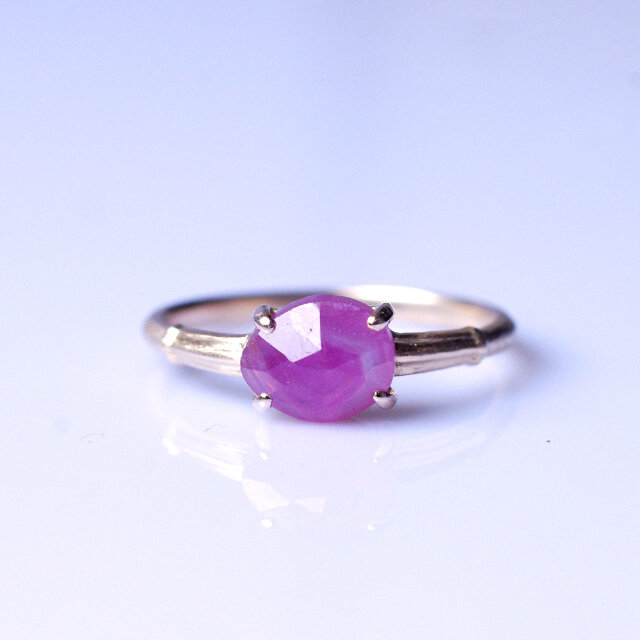 小粒で落ち着いたピンクカラーとシンプルめなデザインで、いつもおともにしていただくリングにもピッタリかなと思います。