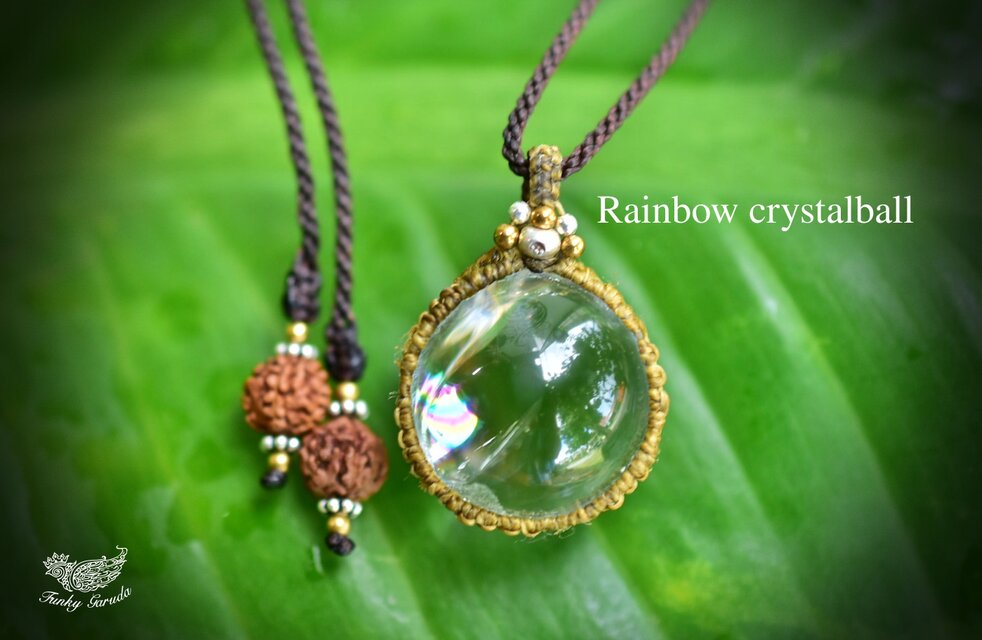 煌めく虹入り★レインボー★クリスタルボール マクラメペンダントcryy003