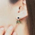 シンプルなスタッドピアスに、耳の後ろでゆらゆら揺れる葉っぱのチャームがさりげないアクセント。