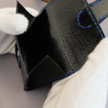 外側は開閉の容易なフラップの差込み式にしており、藍染め革と黒サドルレザーでスマートな雰囲気を醸し出しております。