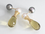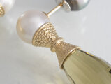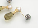 Olive quartz & Akoya pearl Vintage parts Pierce