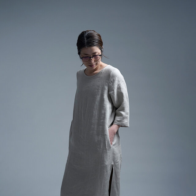【wafu プレミアム】 Linen スリットワンピース / フラックス a032j-flx1
