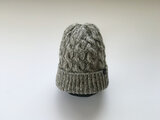 ウール/麻のぽっこりニット帽 アラン模様 ベージュ杢