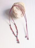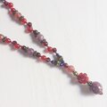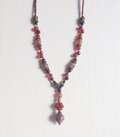 赤や紫の石を使ったアンティーク風なデザインのY字ネックレスです。