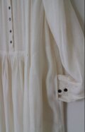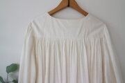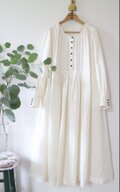 リネン100%ダブルガーゼ生地で、配色ボタンギャザーワンピースを作りました。