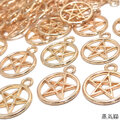 透かし五芒星のチャーム ゴールド 15個です。五芒星デザインは古代より魔除けの印として世界各地で使われています。ピアス、イヤリング、ネックレス、ブレスレット、レジン、宇宙系等、様々な作品のアクセサリーパーツ素材として。