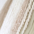 ホワイトにイエローとグレーを足した象牙色のような上質なメリノトップウールをメインにたっぷり使用し、きらきらひかるリネンの大粒ネップヤーンや真っ白なシャギーヤーン、ベージュのやわらかなモヘア等、様々な素材を組み合わせ細部にまでこだわり織り上げた一点ものです。