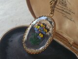 ヴィンテージ パンジーfower Glassインタリオ(40×30㎜)クラシカルネックレス