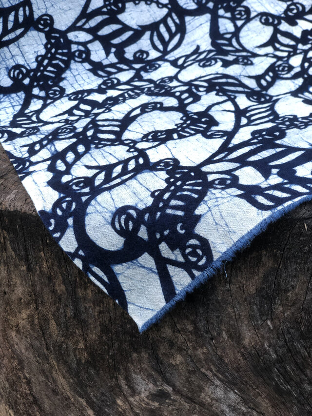模様織り「土布」を使って制作した藍染の小幅生地です。