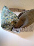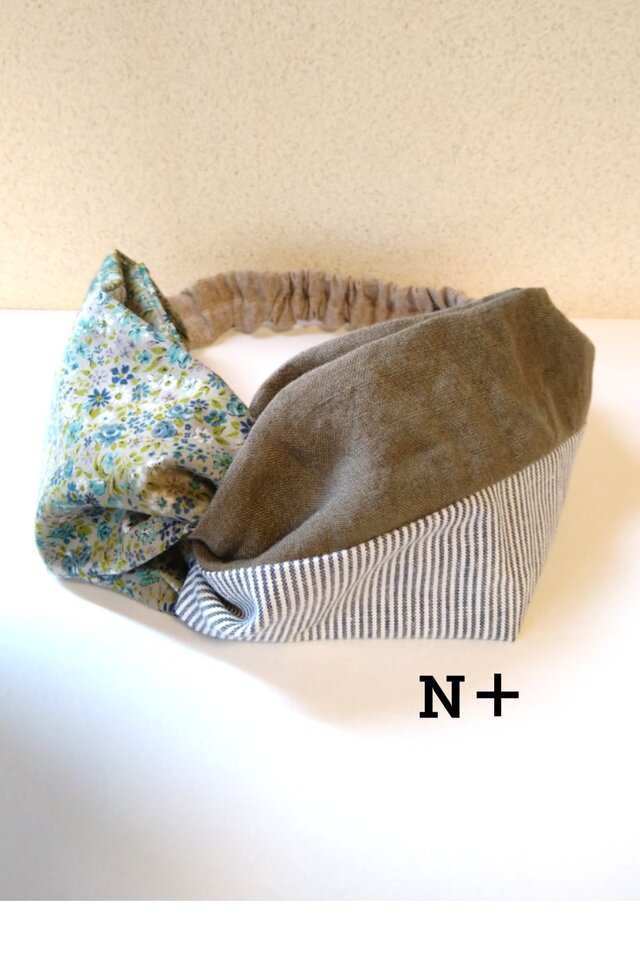 シックなカーキとストライプ、花柄が綺麗なヘアバンドです。
