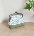 リバティタナローン生地と帆布生地でがま口ポーチを作りました。