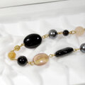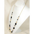 オニキス、水晶などのロングネックレス(88-80.5cm、7.5cmアジャスター、クォーツ、4月の誕生石、天然石)