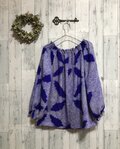 茄子紺色の絽の絞りからラグラン袖のギャザーブラウスをお仕立てしました。