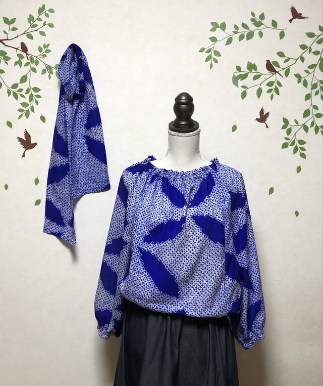 ☆ 絽の絞り ラグラン袖ギャザーブラウス &ストール