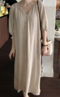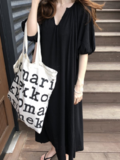 chicシンプルでシックなルーズVネックワンピース ドレス カジュアル