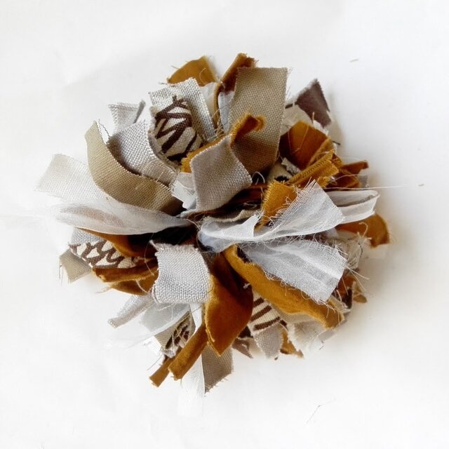 そして白のオーガンジーでポンポンコサージュを作りました。