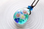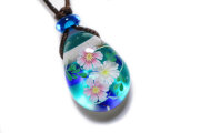バーナーワークの技法で制作した、手作りのガラスのペンダントです。