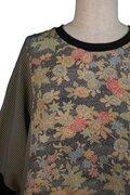 トレーナーの様に首回りと袖口に付けた黒のリブニットがアクセントになり和服生地が新鮮で個性的な仕上がりになりました。