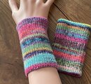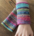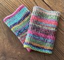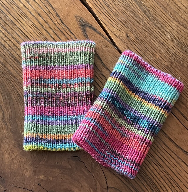 ピタッと手首にフィットするように一目ゴム編みで仕上げました。