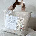 フランスの手刺繍アンティークモノグラムとリネンを使ったトートバッグです