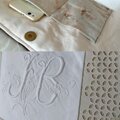 リネンに丁寧に緻密にモノグラムが手刺繍され