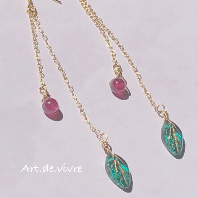 その「ローライドガーネット上品なゴールドのアクセントをきかせた、ロングチェーンがふるふると耳元で揺れ動き、リーフとの組み合わせがベストマッチー!!