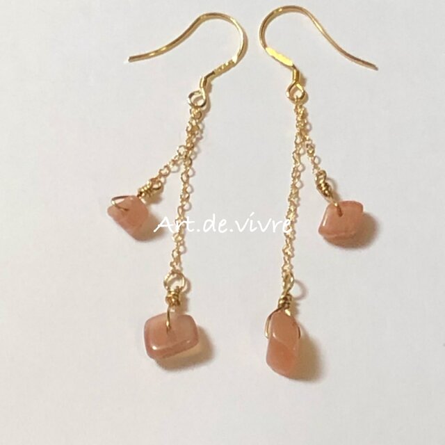 「サンストーン」のフルフル揺れるハートチェーンロングピアス