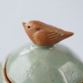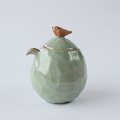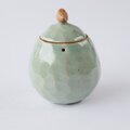 ぽってりした形にさわやかな水色の釉薬をあしらいました。