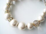 3種類のサイズのキスカカラーのコットンパールとロンデルを組み合わせた、パーティなどにぴったりの華やかなブレスレットです。