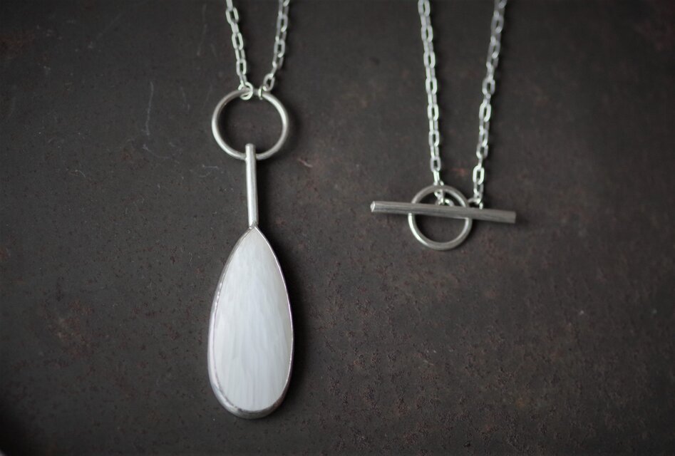そのスコレサイトの特徴を生かして、すっきりと繊細なネックレスに。