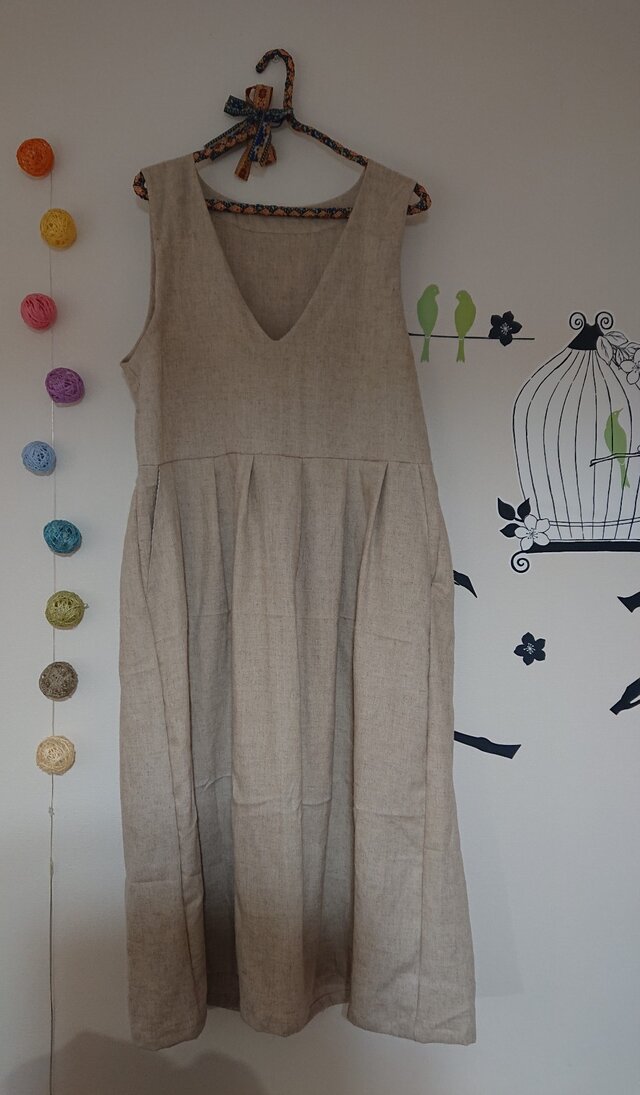 オーガニックリネンでVネックのジャンパースカートを制作いたしました。