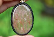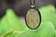 愛らしい魅力を持つ天然石を、シンプルなマクラメペンダントに仕上げました。