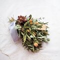 グリーンのユーカリに、茶色のニゲラとシダの葉を合わせてオシャレな雰囲気です。