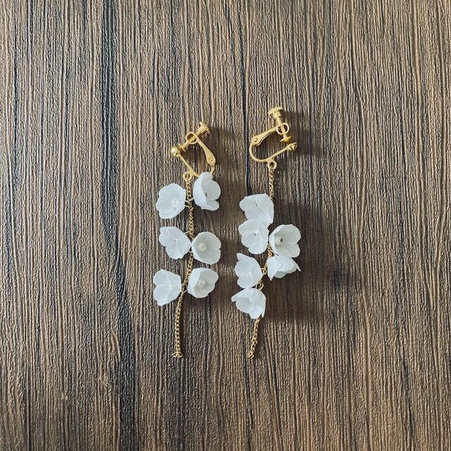 お花とチェーンのイヤリング〈white〉【パーツ変更可】