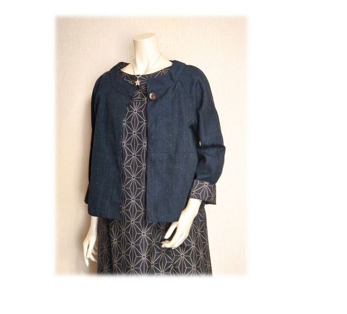 16*紬リメイクショートジャケット(紺紬×麻の葉大島)