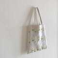 サイズ: たて22cm ・ 横21cm ・ 持ち手 幅1cm 長さ31cm ・ 内側に小さいポケットが付いてます。