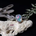遊色の美しいエチオピアオパールをシンプルな粒飾りのデザインリングに仕上げました。