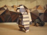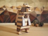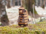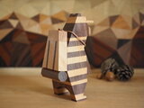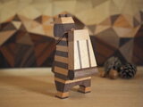 木の素材そのものの色合いを生かし、着色はせずに制作しています。ボーダーのシャツと首から下げたカメラがポイントです!
