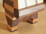 ブナ・ウォルナットの2種類の木を使い分けています。完成した時のどっしりとした立ち姿を求めて密度が高く堅い木を使い、木の色や繊維の向きを考慮し全体のバランスを見ながら組み立てています。ほとんど同じように作っていても、少しずつ個性が出てくるのが木工の面白いところです。