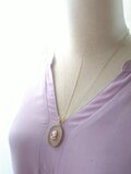 1910~20年頃のアンティークGlass(約30×22㎜)にコーラルオレンジ色のカメオ(約14×10㎜)を埋め込んでお作りしましたネックレスです。
