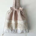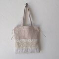 エクリュリネンにアンティークレースをたっぷり付けたトートバッグです