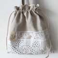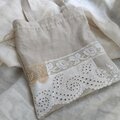 エクリュリネンにアンティークレースをたっぷり付けたトートバッグです