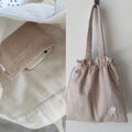 口を絞らないでそのままトートバッグとして、口を絞って巾着バッグとして二通りに楽しんでいただけます