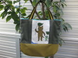 前の底部分と後ろ側はナイロンの生地を使っております。前のイラスト以外の生地は