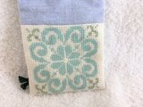 素材:クロスステッチ布地・刺繍糸・綿布地・接着芯・江戸打ち紐・ウッドビーズ