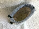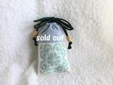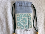 生成りのクロスステッチ用布地に刺繍を施したミニサイズの巾着です。