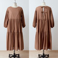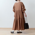 バックのリボンタイが大人かわいいティアード2WAYワンピース/キャメル